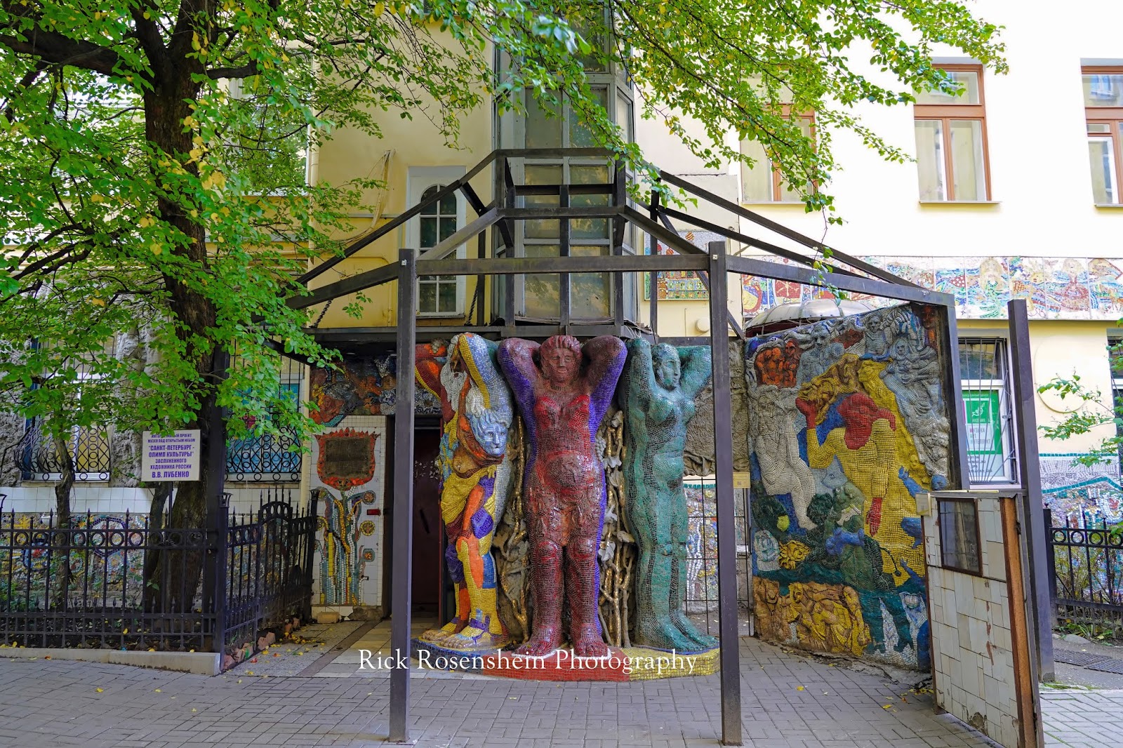 Our guide took us to a hidden gem near a small park in Saint Petersburg. The artistic walls of this building were adorned with brightly colored mosaic tiles and there was a nice park and fountain in the same area.